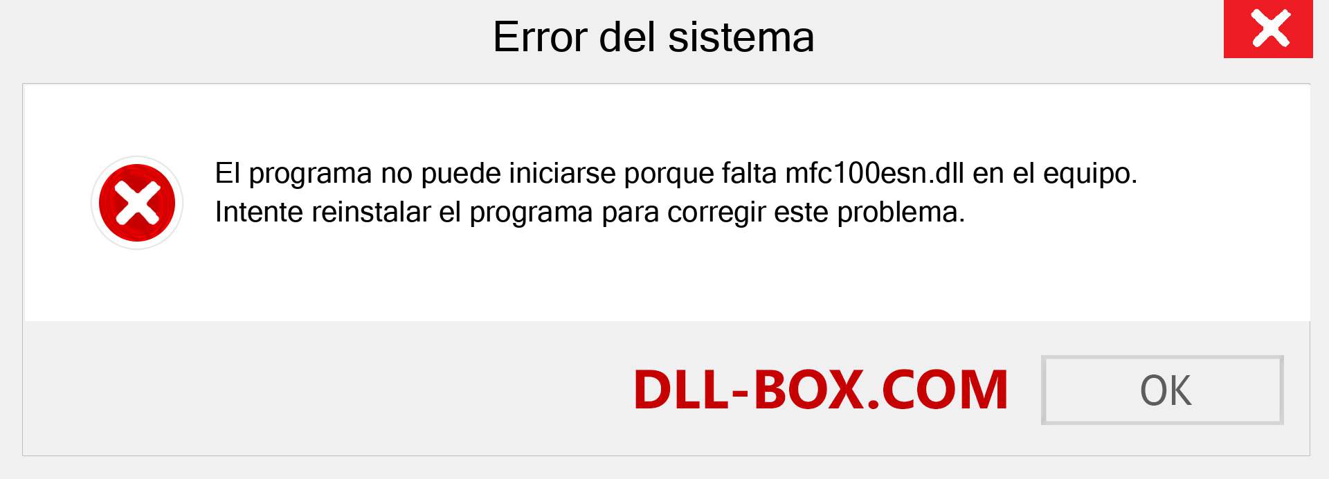 Los errores relacionados con mfc100esn.dll pueden surgir por diferentes razones. Por ejemplo, una aplicación defectuosa, mfc100esn.dll, ha sido eliminada o extraviada, dañada por software malicioso presente en su PC o un registro de Windows dañado.